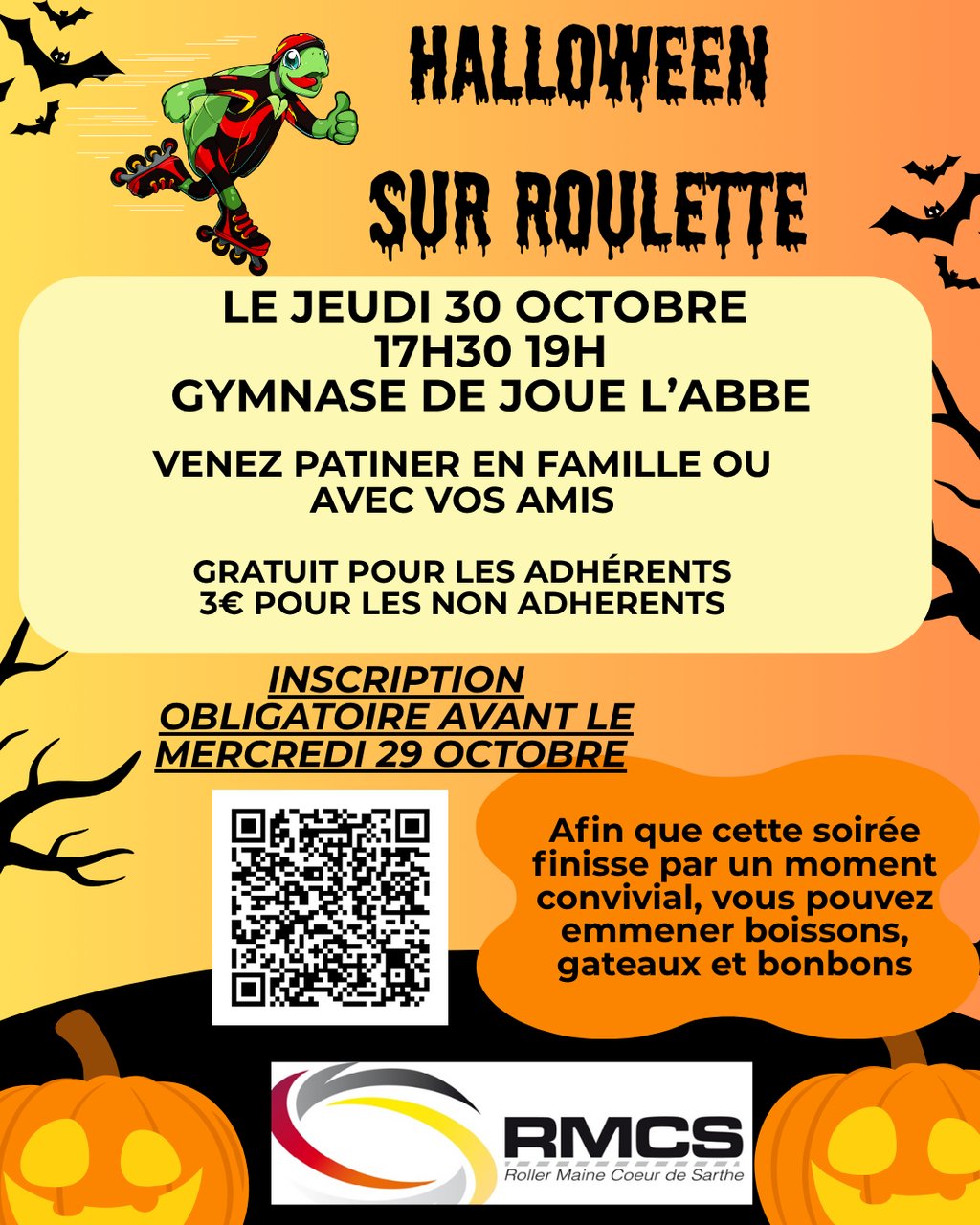Venez patiner le jeudi 30 octobre de 17h30 à 19h en famille ou avec vos amis au gymnase de Joué l'Abbé.
