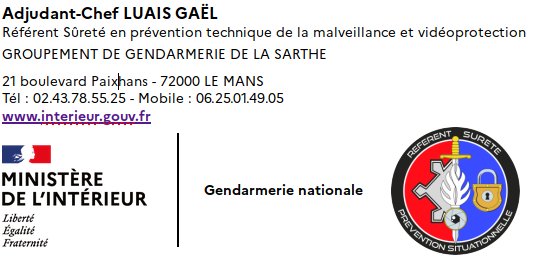 Message de l'adjudant-chef LUAIS, référent sûreté affecté au Groupement de Gendarmerie de la SARTHE.