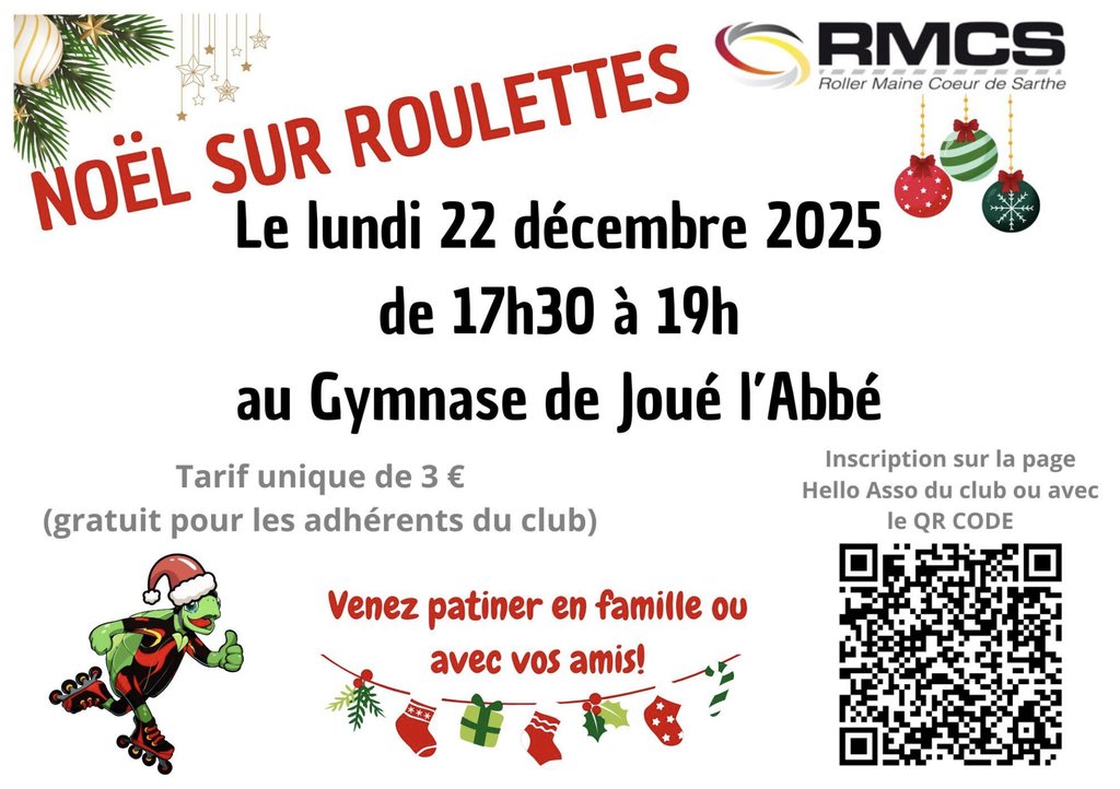 Vous cherchez une activité originale et ludique à partager en famille ou entre amis pendant les vacances de fin d’année ? Le club Roller Maine Cœur de Sarthe vous invite à une animation patinage le lundi 22 décembre 2025, de 17h30 à 19h00, au gymnase de Joué l'Abbé.