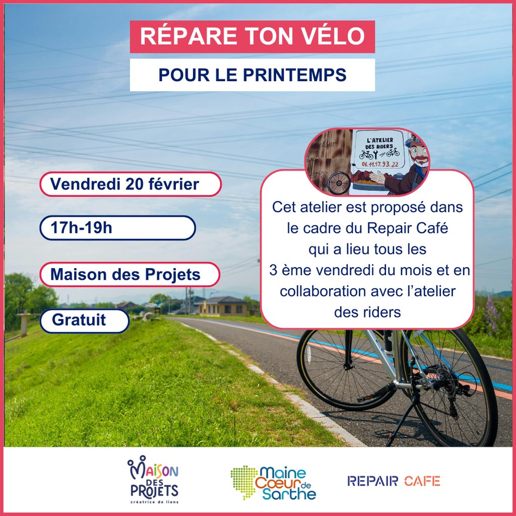Dans le cadre du Repair Café et en collaboration avec l'atelier des riders, la Maison des Projets propose un atelier pour réparer son vélo. le vendredi 20 février de 17h à 19h.