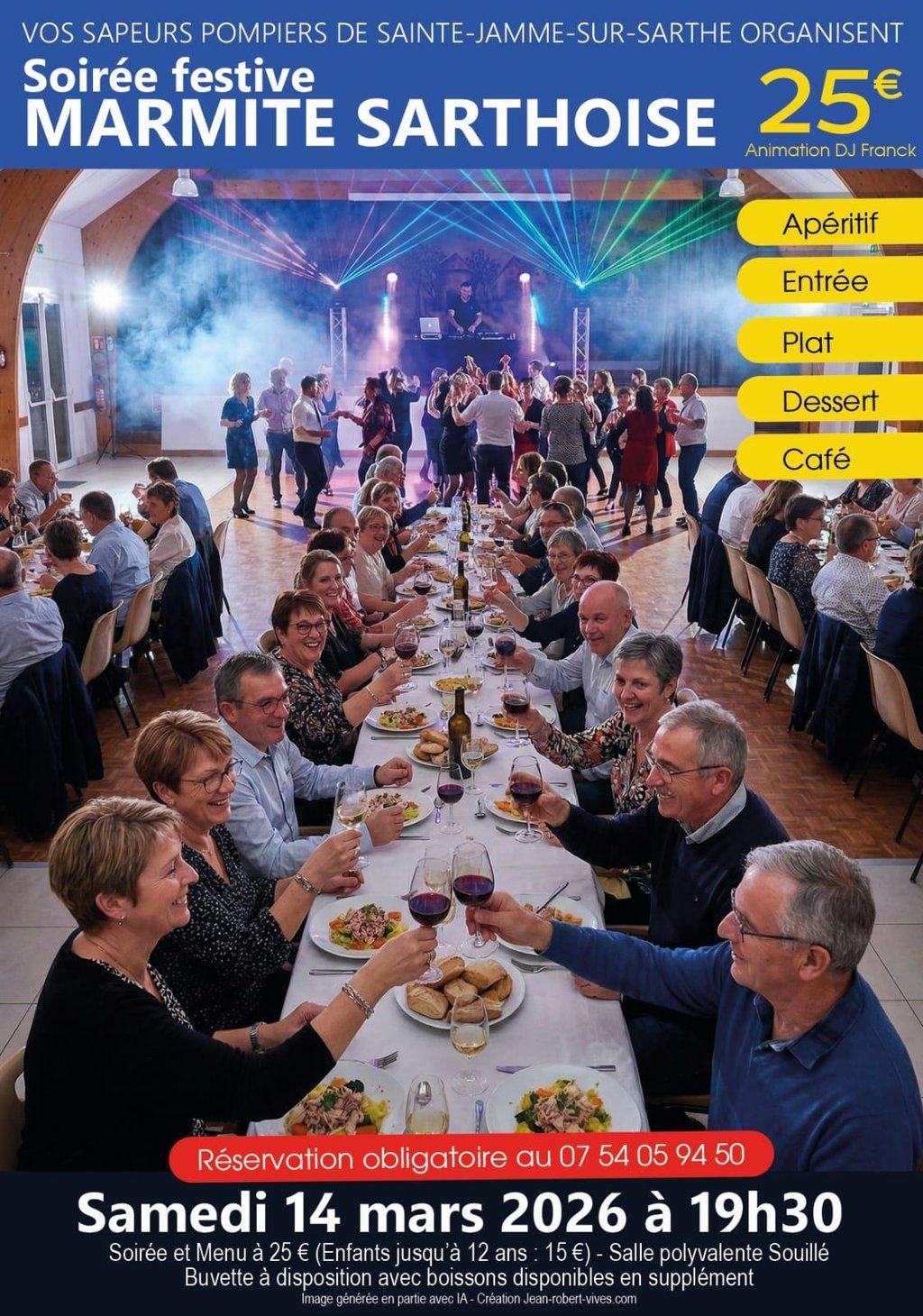 LâAmicale des sapeurs-pompiers de Sainte-Jamme-sur-Sarthe vous invite Ă partager une soirĂ©e conviviale et chaleureuse autour dâune marmite sarthoise, dans une ambiance festive et dansante đ¶