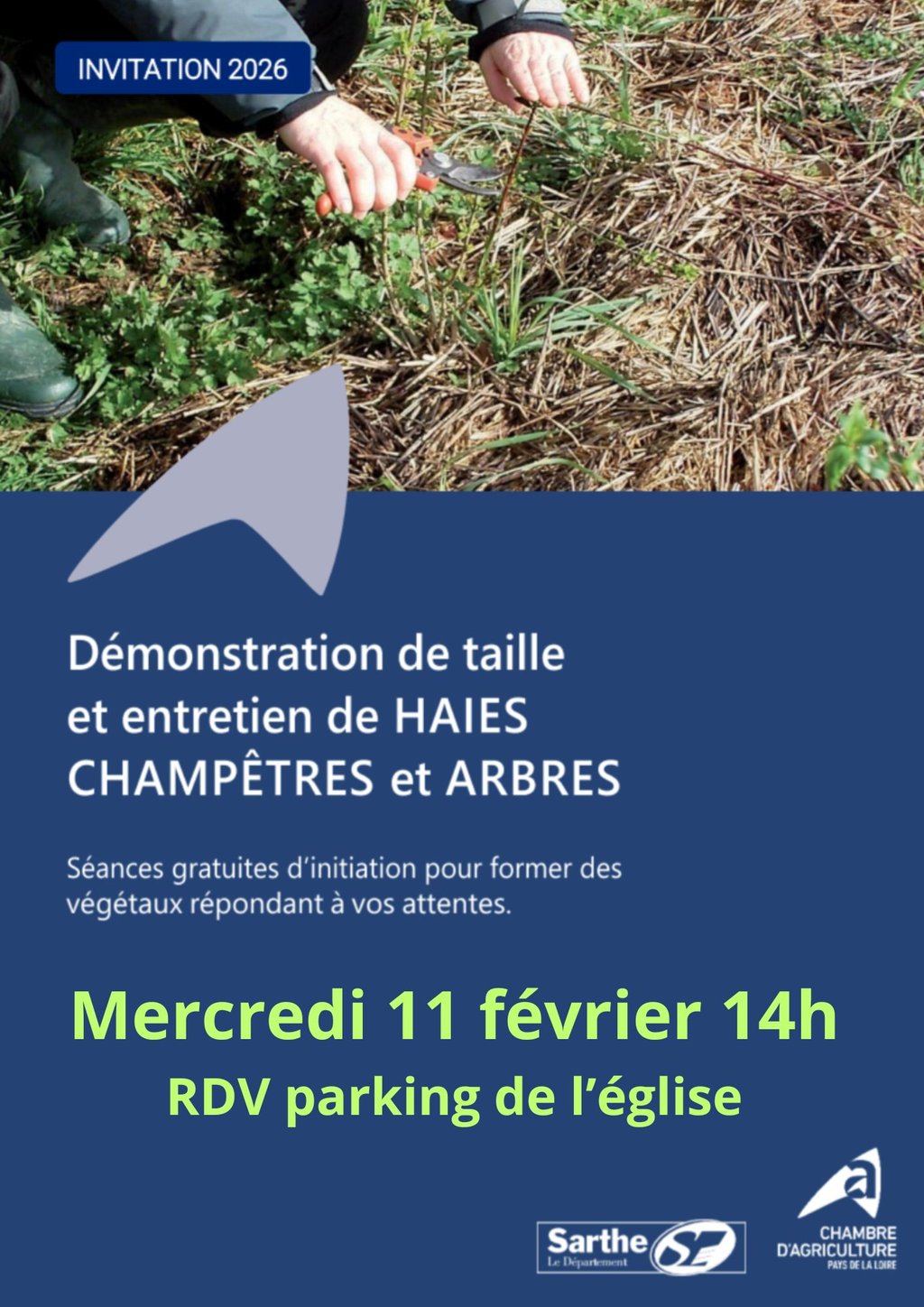 La démonstration de recépage d'une haie de deux ans et de la taille de formation d'arbres isolés et fruitiers aura lieu le mercredi 11 février à 14 h à la Guierche.